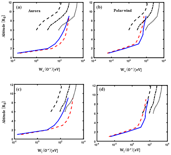 Comparing Monte Carlo simulations, mean particle theory estimates, and observations of H+ and O+ outflows at high altitudes and latitudes