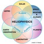 Figure 1Illustration of the interconnected areas/topics of Heliophysics and neighbouring disciplines and communities, plasma and Heliophysics being denoted as crucial components of all surrounding disciplines. (Credit: Heli Hietala)