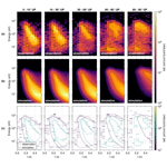 In the first snapshot at 0.041 s after the start of the precipitation (row (a) of Fig. 2), just before the start of the time–energy dispersed structure, it is obvious that electrons with a small pitch-angle reach low altitudes much faster than electrons with a larger pitch-angle. Within a given pitch-angle stream, we can also observe that the electrons with a high energy are propagating faster than the electrons with a lower energy, as is expected from . In that first snapshot, the high energy field-aligned electrons have already reached low altitudes in the ionosphere (<200 km) where neutral densities are higher and started to produce secondary electrons in ionization collisions. This secondary electron production is visible as a nearly isotropic flux of electrons at low energies (<20 eV).