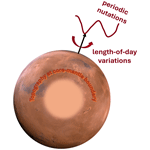Seasonal variations in Mars' length of day (LOD) are substantial because a significant fraction of the atmosphere – about one quarter – participates in the sublimation and condensation cycle at the polar ice caps. Remarkably, these variations are comparable in magnitude to those on Earth, despite Mars having a much thinner atmosphere.