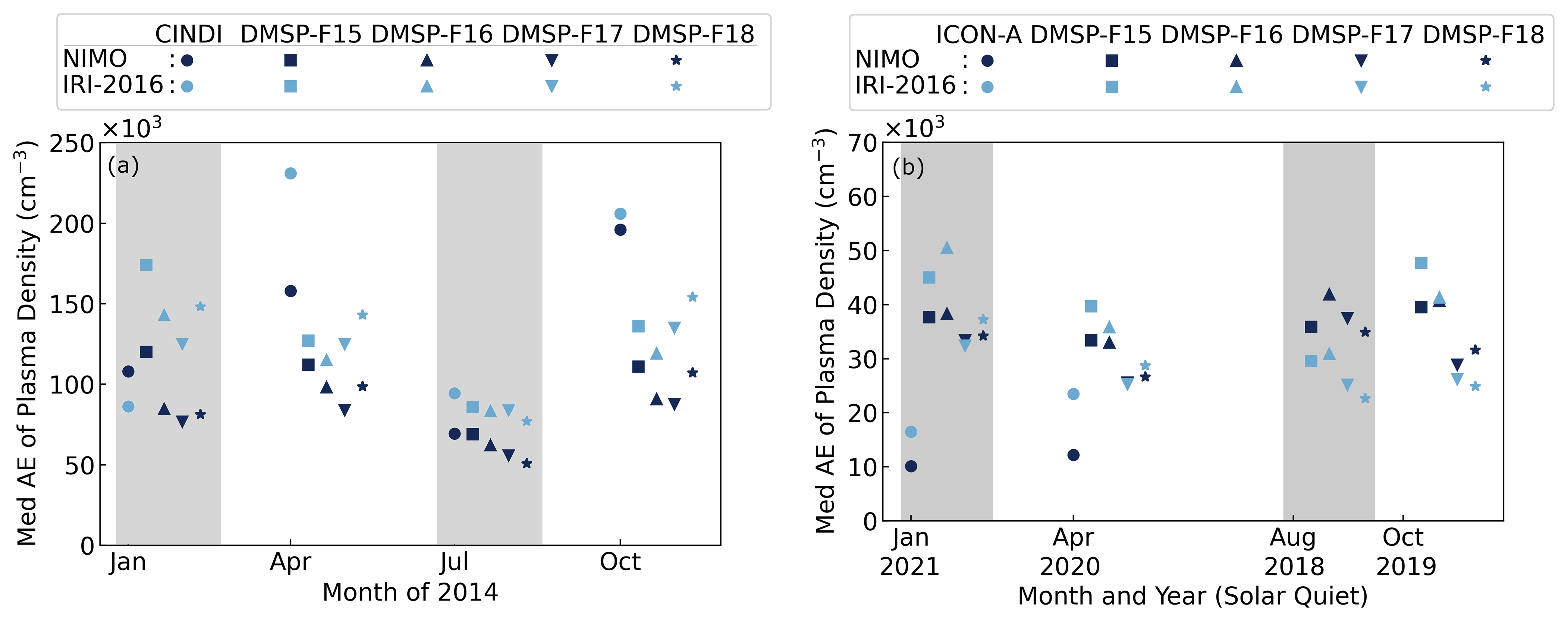 The CINDI, DMSP, and ICON validation focused on the model performance in the topside ionosphere. It found that NIMO fared better than IRI-2016 during solar active periods, though both NIMO and IRI-2016 had smaller errors during solar quiet periods. The topside ionospheric validation showed seasonal variations in the Med. AE that were similar to those seen in the JASON TEC RMSE.