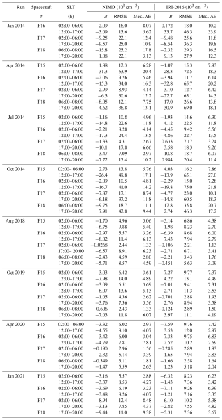 Table A9Global, topside ionosphere statistics from DMSP for SLT regions.